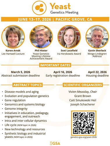 Join SGD at #Yeast26 for cutting-edge #yeast research, networking opportunities, engaging talks, poster sessions, and workshops, for everyone from early career scientists to experienced researchers! Abstract submission by Mar5, early registration ends Apr16. See you there!